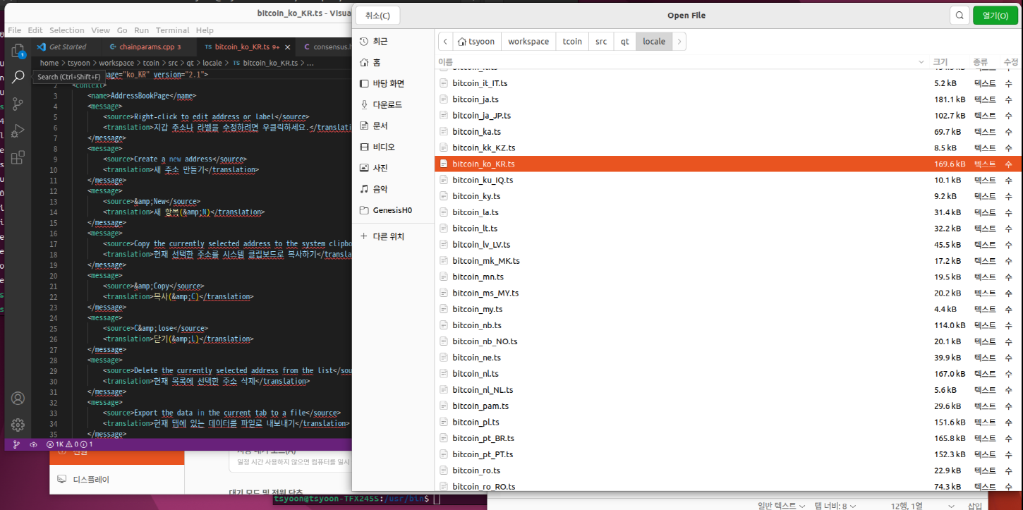 터미널에서 code 명령어를 입력하면 x-window에 VS 화면이 나타납니다. 소스를 불러와서 편집합니다.