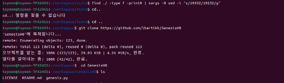 tcoin으로 이름을 붙였는데 새로운 이름 아무거나 붙여서 workspce 폴더 하나 만들어서 명령어를 입력해 주세요.