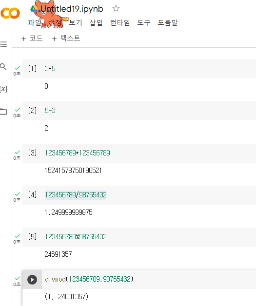 이후에 함수를 사용하는 방법도 있는데 divmod 함수를 이용해서 파이썬에서의 나머지와 몫을 확인할 수 있습니다.