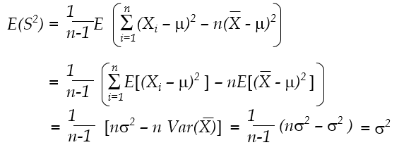 증명 방법은 아래와 같습니다. 표본평균 기댓값은 모평균과 같으며, 표본분산의 기댓값은 모분산과 같습니다.