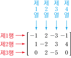 행(가로줄)과 열(세로줄)로 이루어졌기 때문에 행렬로 이름을 붙였습니다.