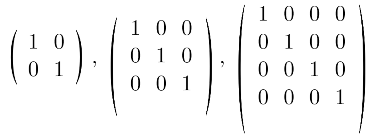 단위행렬은 행과 열의 수가 같고 대각선이 1이고 이외에는 0으로 채워진 행렬입니다.