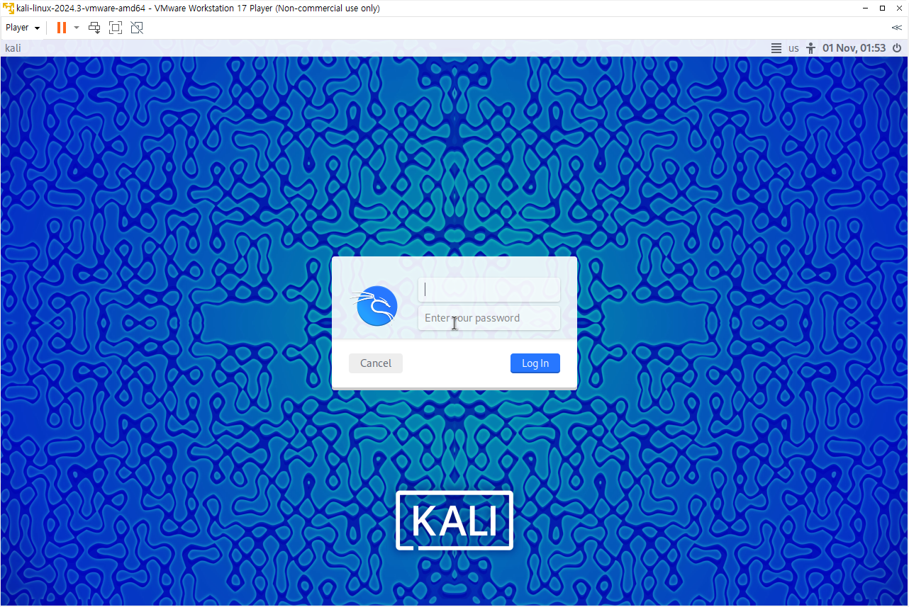 로그인 id: kali 이며 pw: kali 입니다.