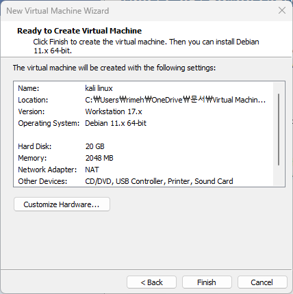 Kali 리눅스와 VMware workstation 2개를 다운로드 받은 후에 VMware (가상환경)부터 설치해야 합니다.