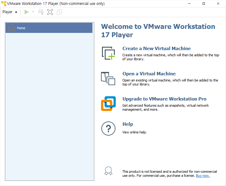 설치가 완료 되었으면 이제 VMware를 실행해 봅시다.