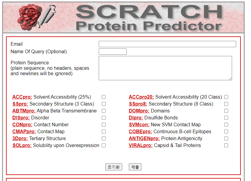단백질 서열 정보 입력을 하고, 옵션을 선택해 보세요.