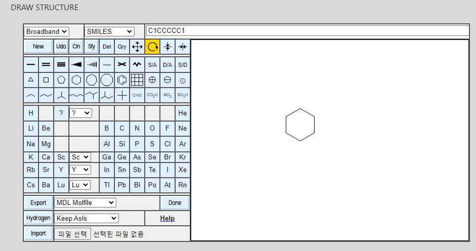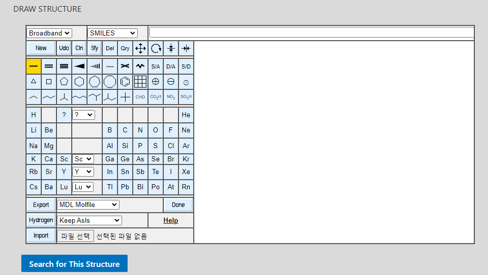 여러가지 파일 형식을 지원하며 그중에서 SDF형식을 지원하며, 화학식을 그리면 그에 비슷한 데이터를 찾기도 합니다.