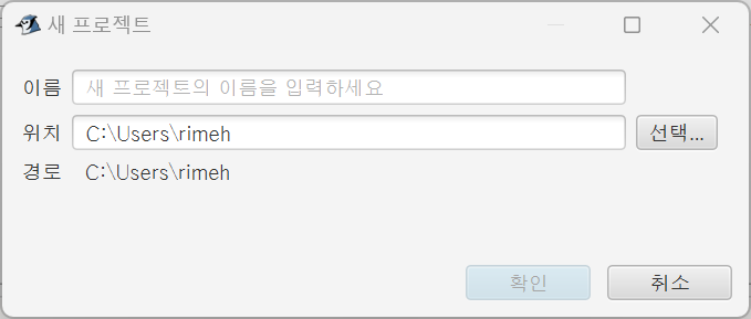 자바는 단위별로 묶는 프로젝트 방식을 선호합니다. 프로젝트를 선택하고 이름을 만들면 사용자 영역에 프로젝트가 저장됩니다.