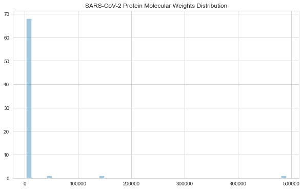 >>>plt.title("SARS-CoV-2 Protein Molecular Weights Distribution");