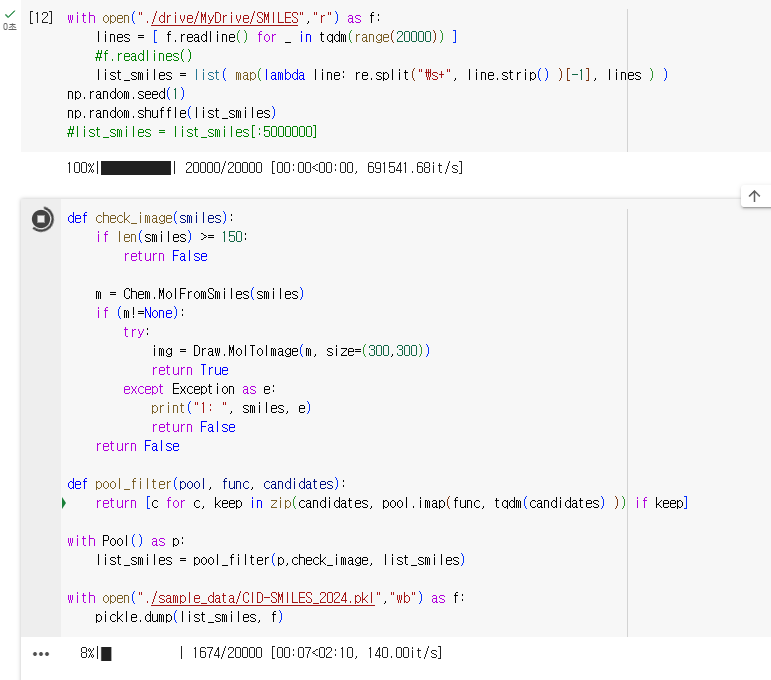 코랩에 RDkit 설치하고 공유폴더 설정한 후에 데이터를 추출하면 됩니다.