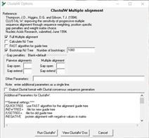 Accessory Application -> ClustalW Mutiple Aligement를 선택 한 후 Run ClustalW를 실행하면 된다.