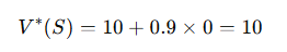 예를 들어, 상태 S에서 목표 상태 G로 이동할 때 보상이 +10이고 할인율 γ가 0.9라고 가정해 보겠습니다. 이때 G는 종료 상태이므로 V(G)=0이며, S에서 한 번 이동하면 바로 G에 도달합니다. 따라서