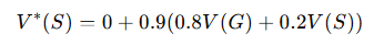 하지만 만약 S에서 G로 갈 확률이 80%이고, 제자리에 머물 확률이 20%라면 식은 다음과 같이 바뀝니다.
