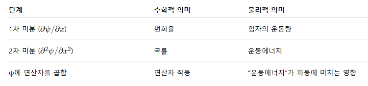 ‘운동에너지’를 계산하려면 파동함수를 두 번 미분해야 하는 이유가 바로 여기에 있습니다.