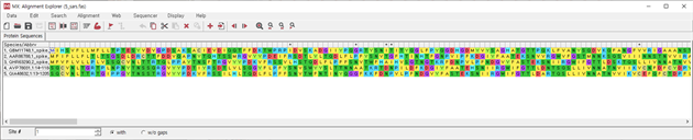 서열정렬이 나타나는데 앞서 bioEdit에서 진행했던 서열과 큰 차이는 없다. ClustalW 알고리즘이 같다.