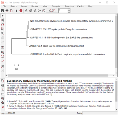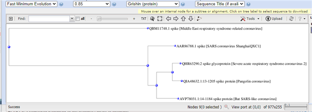 위에 있는 메뉴중에 Phylogenetic Tree를 선택하면 계통수 나무가 결과로 보인다.