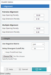 Aligment에서 ClustalW, MUSCLE 메뉴들을 선택할 수 있다.