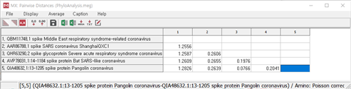 이 계통도를 통해 현재 SARS2와 Pangolin의 관계를 알 수 있으며, MERS와는 거리가 있다는 것을 분석 할 수 있다.