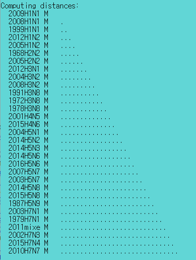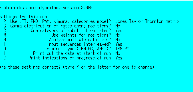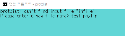 단백질 거리라는 이름의 명령어인 protdist.exe 파일을 실행합니다.