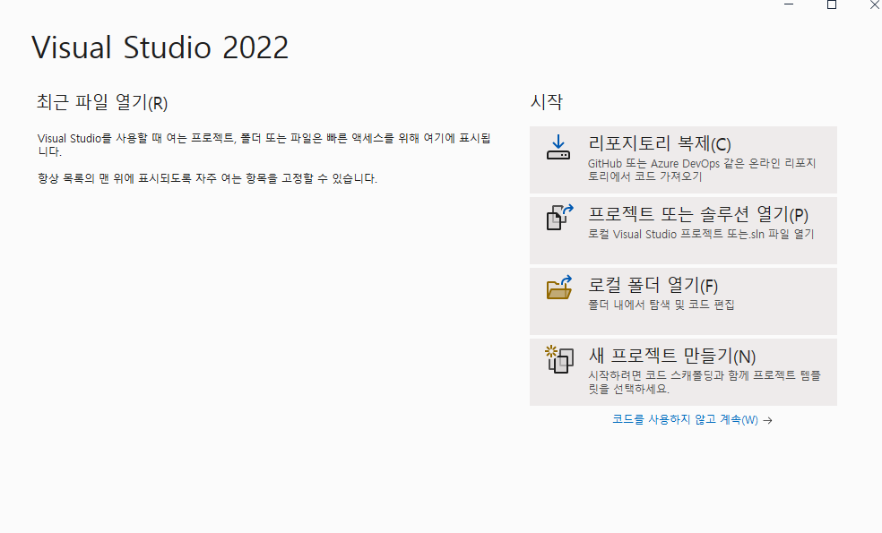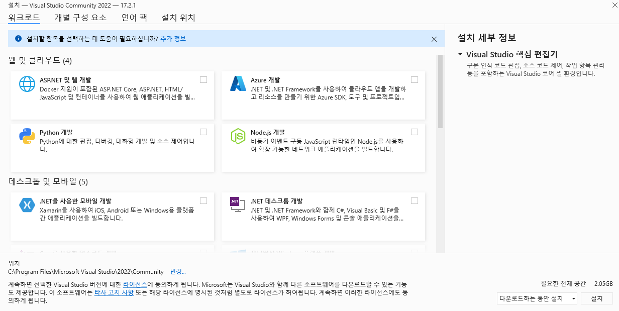 설치한 후에 Visual Studio 2022를 실행하면 됩니다.