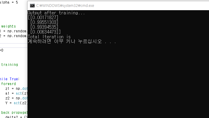 인공신경망 오류역전파 프로그램을 한번 실행해 봤습니다.