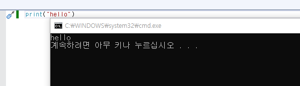 코딩 환경이 만들어지면 파이썬 명령어 print 구문을 실행합니다.