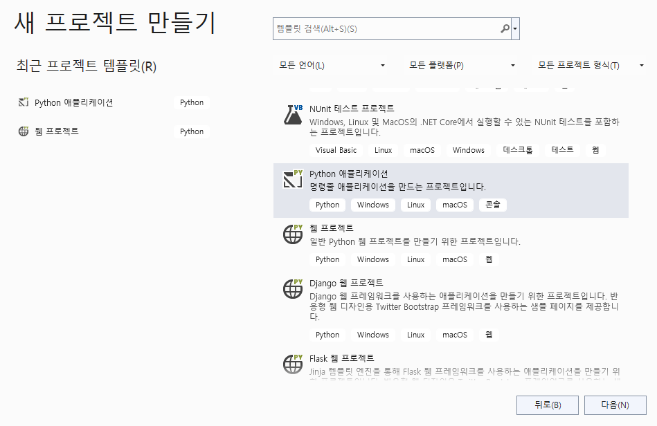 Python 애플리케이션이라는 메뉴를 선택하고 다음을 선택하세요.