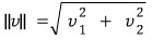 벡터 (v1, v2)의 크기는 다음과 같습니다.