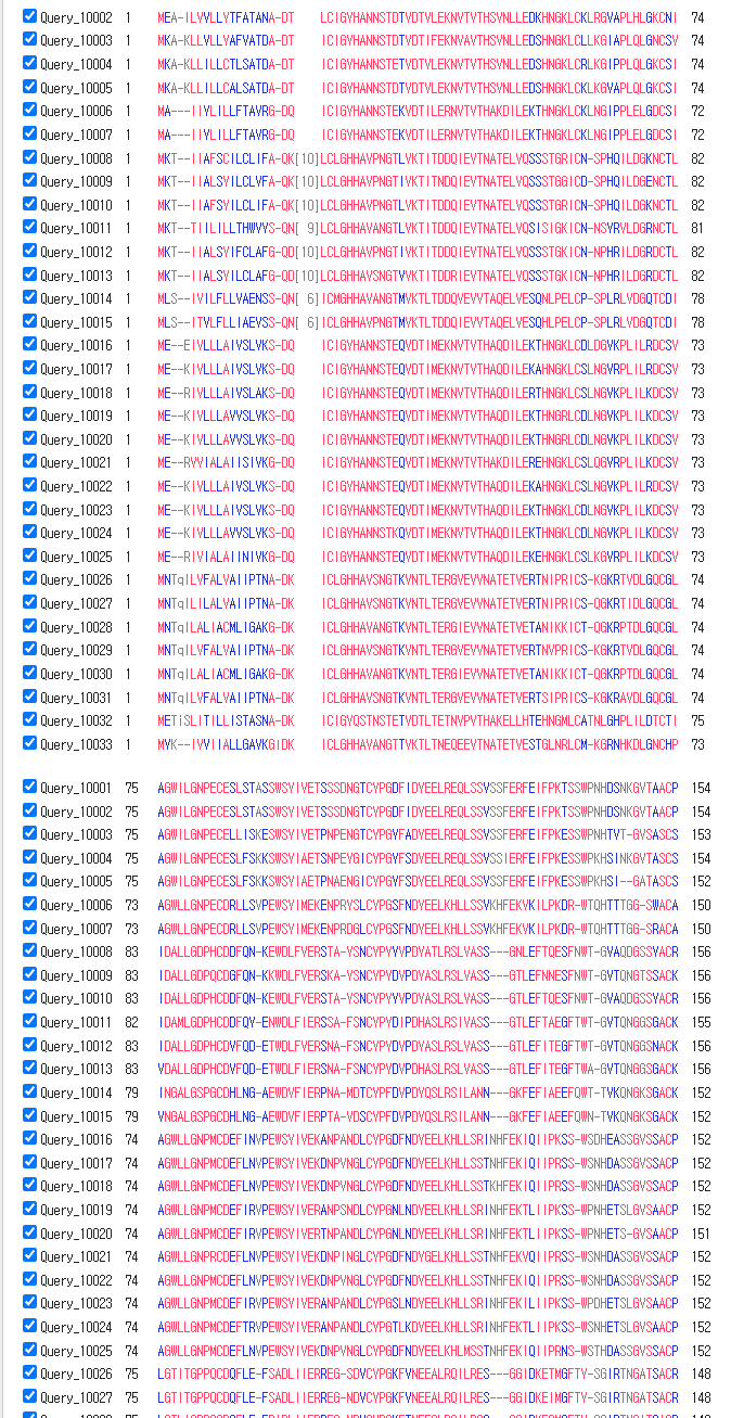 공백도 있고, 서열도 아미노산들끼지 맞는 것끼리 정렬이 되어 있습니다.