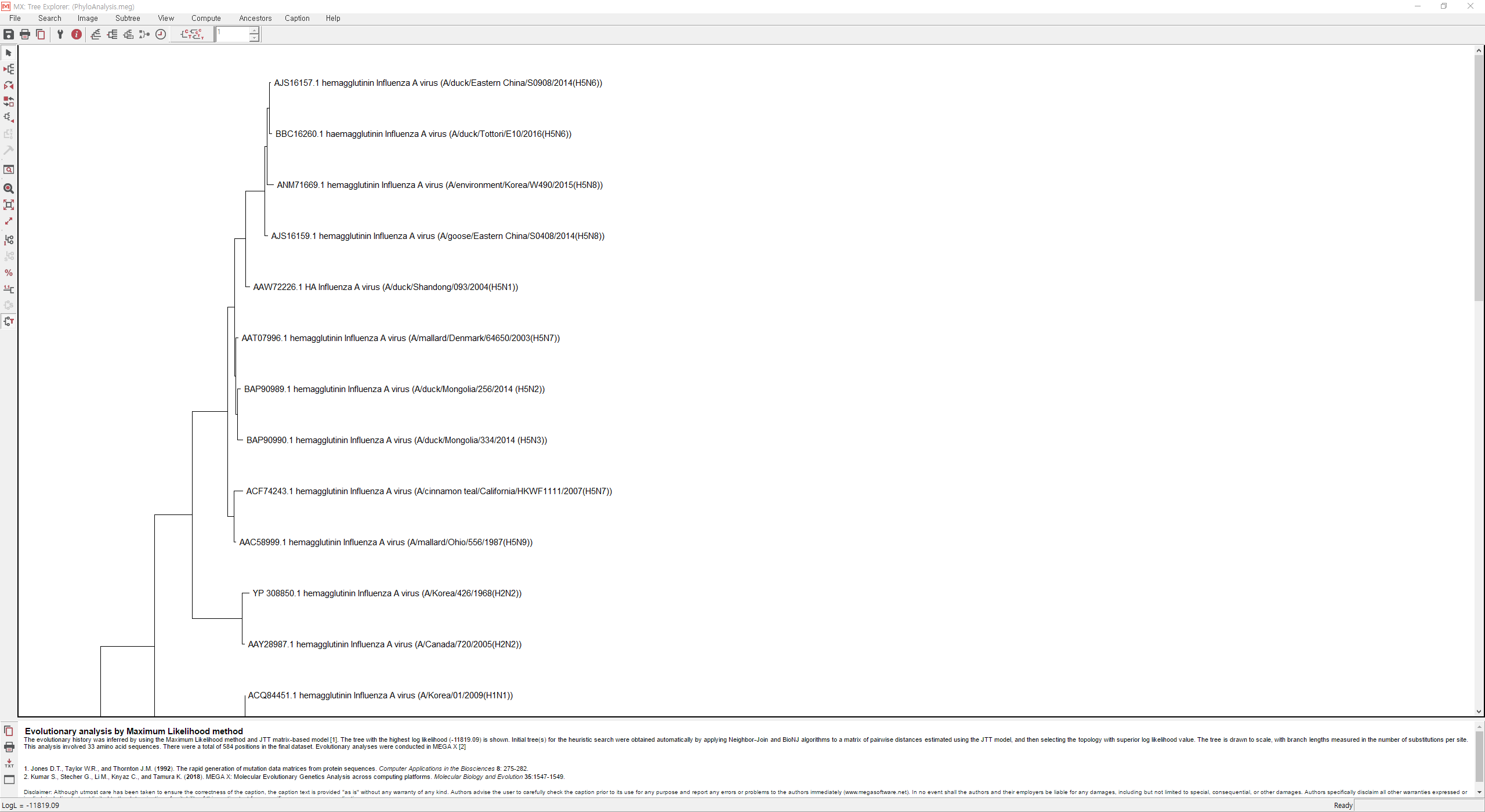 MEGA-X에서 계통수를 나타낸 결과입니다. 이렇게 하면서 어느 아형들이 서로 아미노산에 대한 유사 관계가 있는지 확인할 수 있습니다.