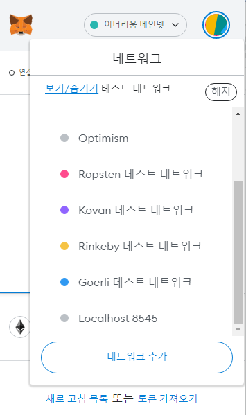 메타마스크를 열어서 네트워크 추가 버튼을 누릅시다.
